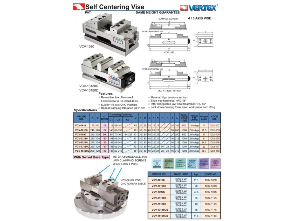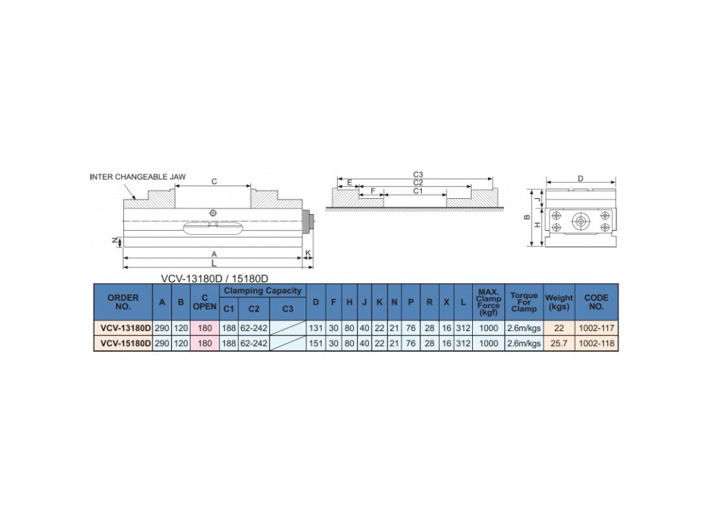 Dvojitý samostředící svěrák VCV-13180D šířka čelistí 130 mm