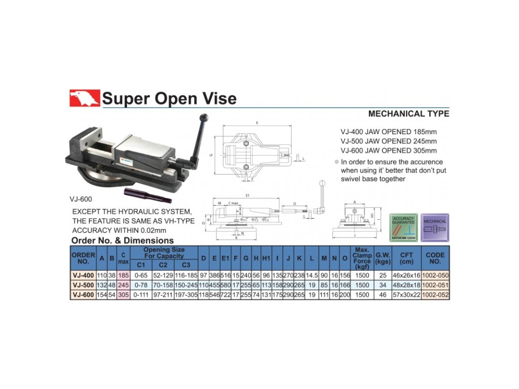 Otočný svěrák s rozevřením čelistí 305 mm VJ-600