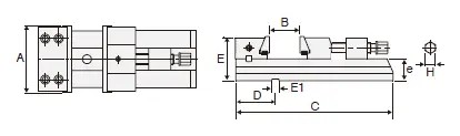 | Model | A | B | C | D | E | E1 | e | H | Upínací síla | Hmotnost (kg) |