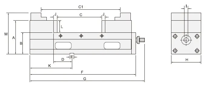 | Model | Max. upínací síla | H | I | J | K | L | M | Hmotnost (kg) |