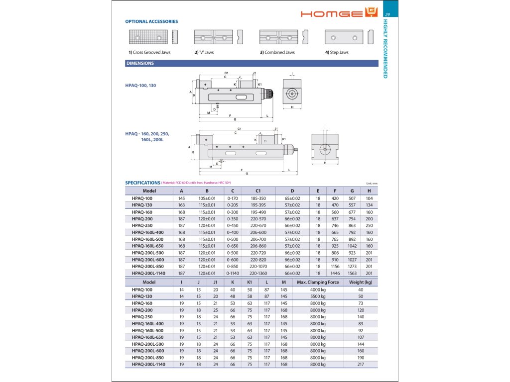 | HPAQ-100 | 14 | 15 | 20 | 40 | 50 | 57 | 145 | 4000 kg | 40 | ||